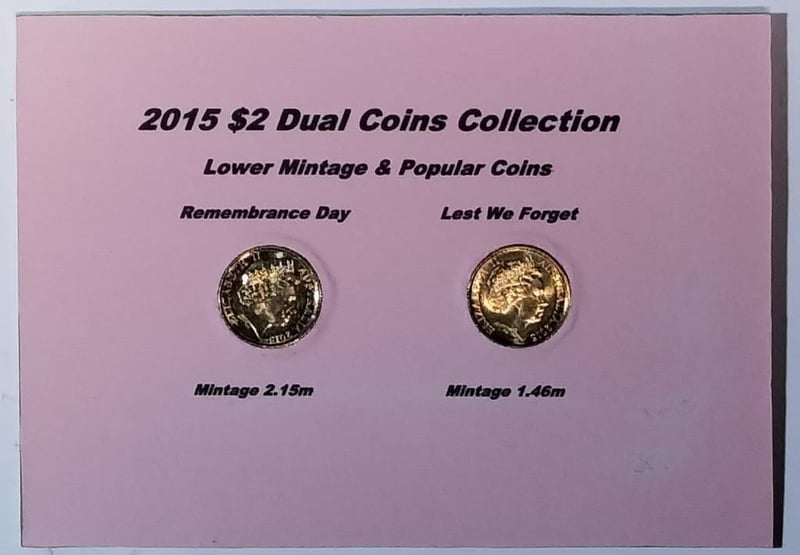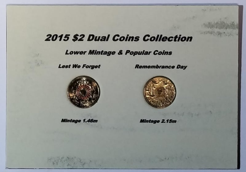 2015 DUAL $2 COINS COLLECTION LOWER MINTAGE & POPULAR COINS LEST WE FORGET(RED RING) & REMEMBRANCE DAY(ORANGE RING) 488302+18
