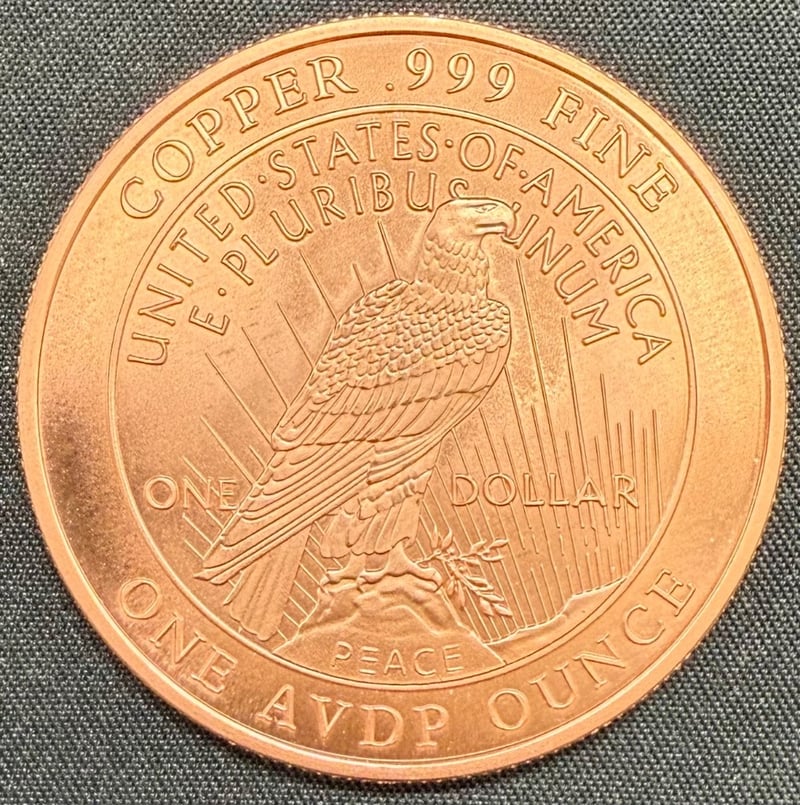 ONE AVDP OUNCE .999 FINE COPPER UNITED STATES OF AMERICA LIBERTY ONE DOLLAR COINCondition: Aunc584892+60