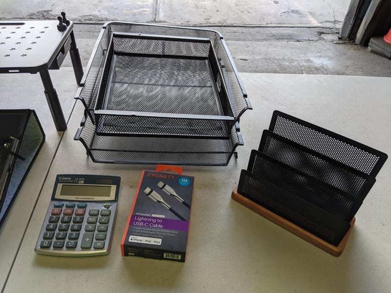 ASSORTED OFFICE STATIONERY. INCLUDES PENHOLDERS, USB CABLES, STATIONERY HOLDERS AND MORE ..... SOLD AS LOT