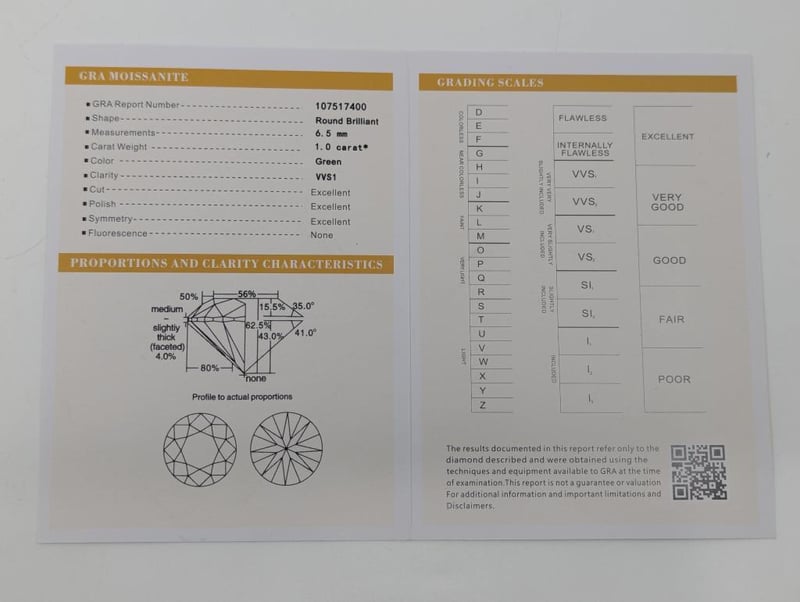 1.0CT GREEN MOISSANTESize: 6.5MmShape: Round Brilliant Comes With Gra Moissanite ReportCondition: Good - Refer To Images586160+3