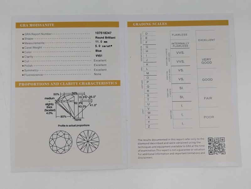 5.0CT BLUE MOISSANITESize: 11.0MmShape: Round Brilliant Comes With Gra Moissanite ReportCondition: Good - Refer To Images586160+10