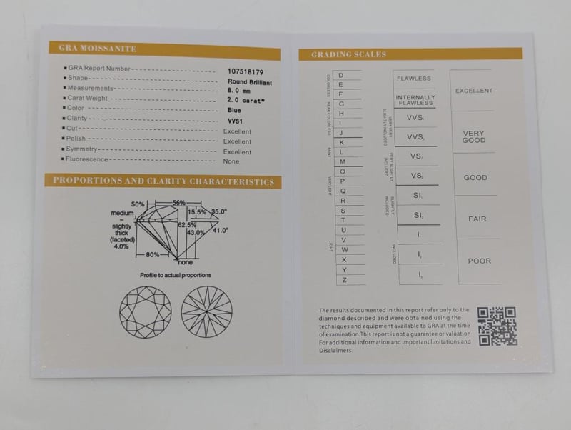 2.0CT BLUE MOISSANITESize: 8.0MmShape: Round Brilliant Comes With Gra Moissanite ReportCondition: Good - Refer To Images586160+11