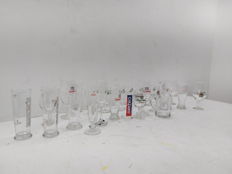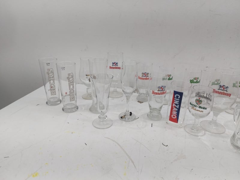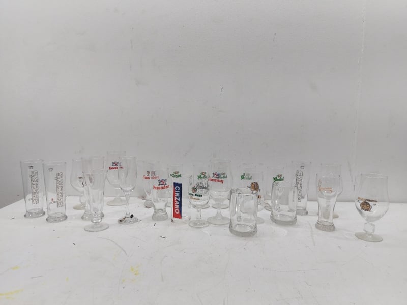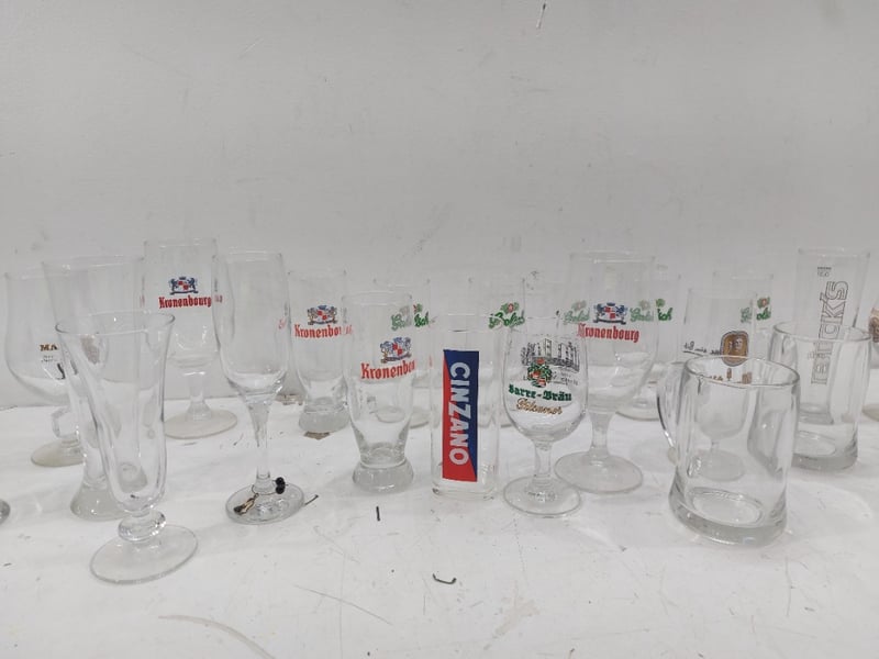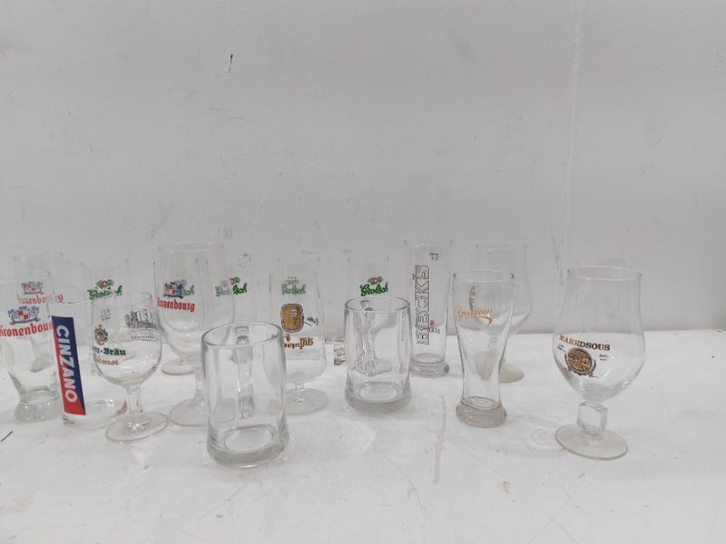 Assorted Glasses And Cups Includes, Kronenbourg, Becks, Maredsoys, Quantity As Lot, Sold As Lot