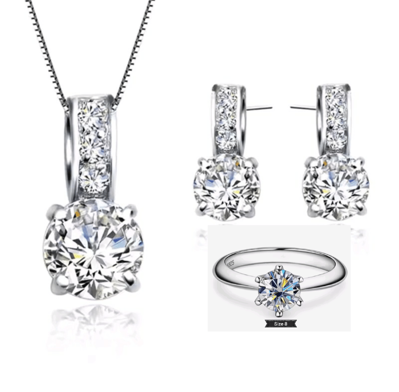 SILVER PLATED PENDANT NECKLACE RINGS AND EARRINGS