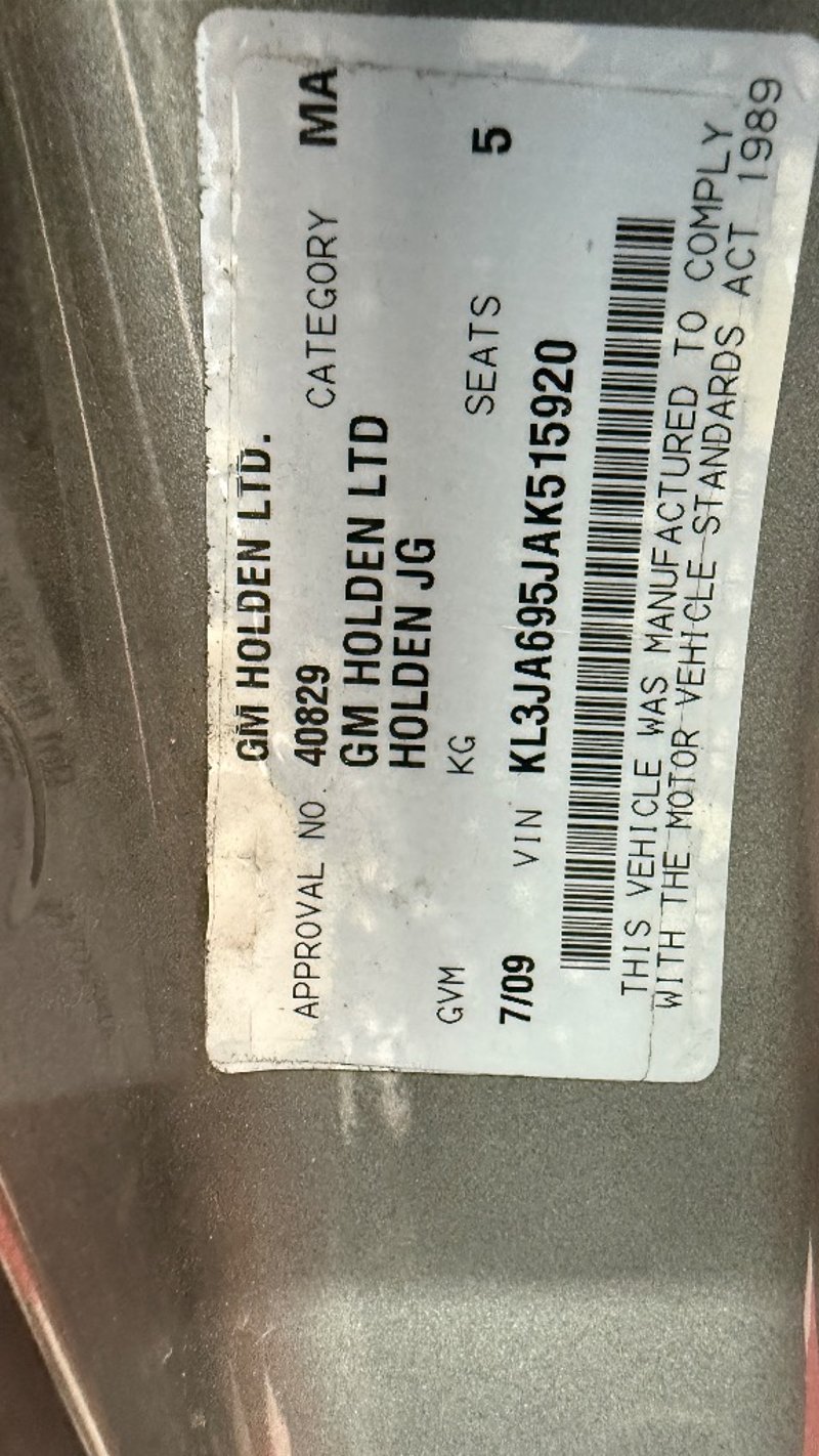 2009 Holden Cruze JG CD Year: 2009 Make: Holden Model: Cruze Series: JG Badge: CD Body: 4-Door Sedan Drive Type: Front wheel drive Odometer: Indicating 162,377 Kilometers Engine: 1.8 I4 Petrol Transmission: Automatic Colour: Grey Seats: 5 Description/extras: Air Conditioning, Power windows. Engine Light and Dash lights on. VIN: KL3JA695JAK515920 ENG No: F18D4005019KA AS PER PPSR #PCV (Key #B37 Carrara) Lloyds stock #587588+1