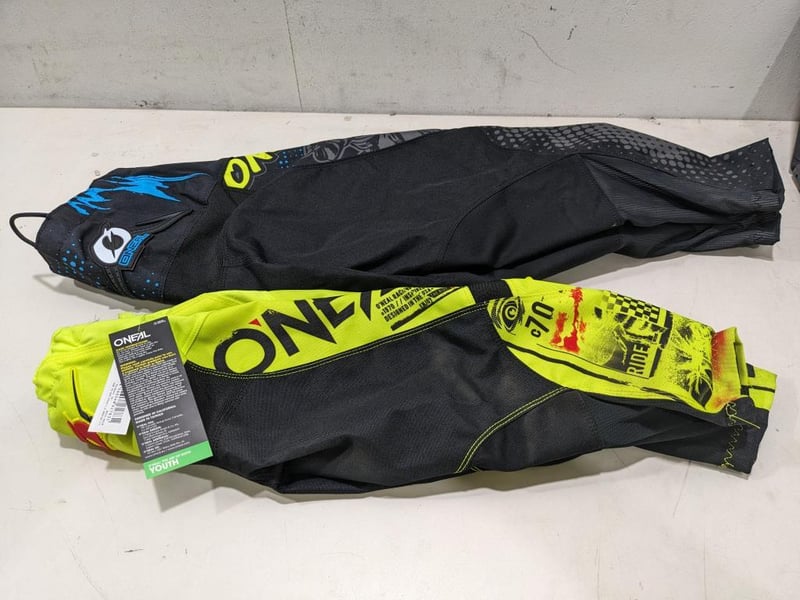 Motorcross Oneal Racing Syncron pants. Size: Youth 18 and 24 Sold as a lot.