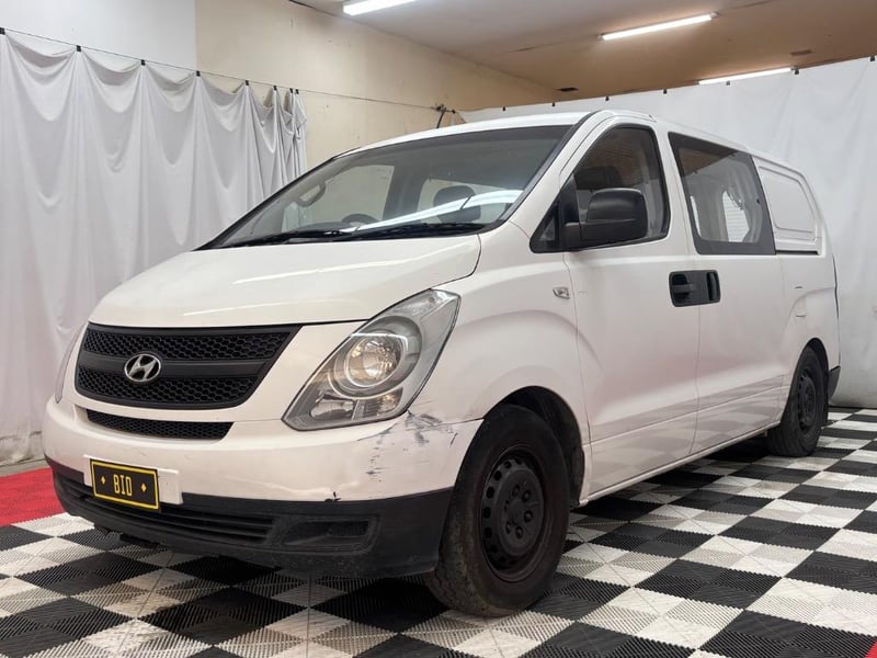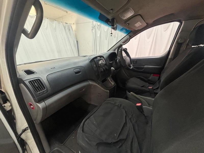 2011 Hyundai iLoad TQ2 Liftback Crew Year: 2011 Make: Hyundai Model: iLoad Series: TQ2 Badge: Liftback Crew Body: 4-Door Van Drive Type: Rear wheel drive Odometer: Indicating 211,810 Kilometers Engine: 2.5 I4 Diesel Transmission: Automatic Colour: White Seats: 6 Description/extras: Air Conditioning, Power windows, SRS, Digital dash, Climate control, AUX / USB, Towbar, CD player. Cup Holders, Multifunctional Steering Wheel, Storage Compartments at the back, Kings Fridge, Solar Panel and Control Unit, Installed Bed Frame and Mattresses, Fan and Wall Lights, Installed Wooden Contemporary Roofliner for bedroom area, Wooden Bench. Interior: - Tears and Scratches on Seat Upholstery - Marks, Scratches, Wear and Sun damage on Dash, Handles, Trim and Upholstery, Right Side Cabin Door Doesn’t Open - Adhesive Marks on Dash - Staining on Headliner - Cracks on Dash Trim as per photos Exterior: - Panel Scratches, Dents and Marks as per photos - Right Side Cabin Door Handle is broken and doesn’t open - Big Grazes on Front Bumper - Left Taillight Housing is Damaged - Rusting is present at the bottom of the vehicle near the cabin doors as per photos - Some Sun Damage on Trim and Bumpers. VIN: KMFWBX7JMCU435009 ENG No: D4CBB943713 (Key #A1 Carrara) Lloyds stock #1031489+1 #PCV
