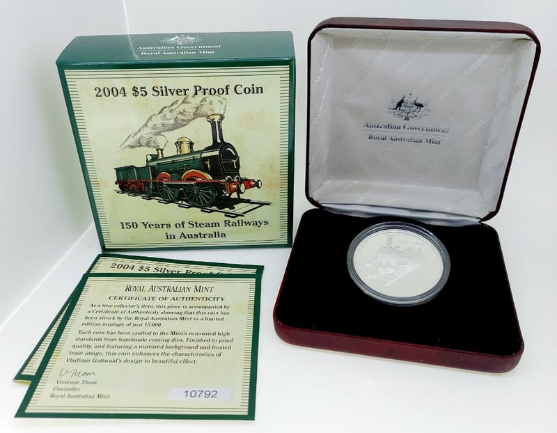 250 YEARS OF STRAM RAILWAYS IN AUSTRALIA 2004 $5 SILVER PROOF COIN488239+79