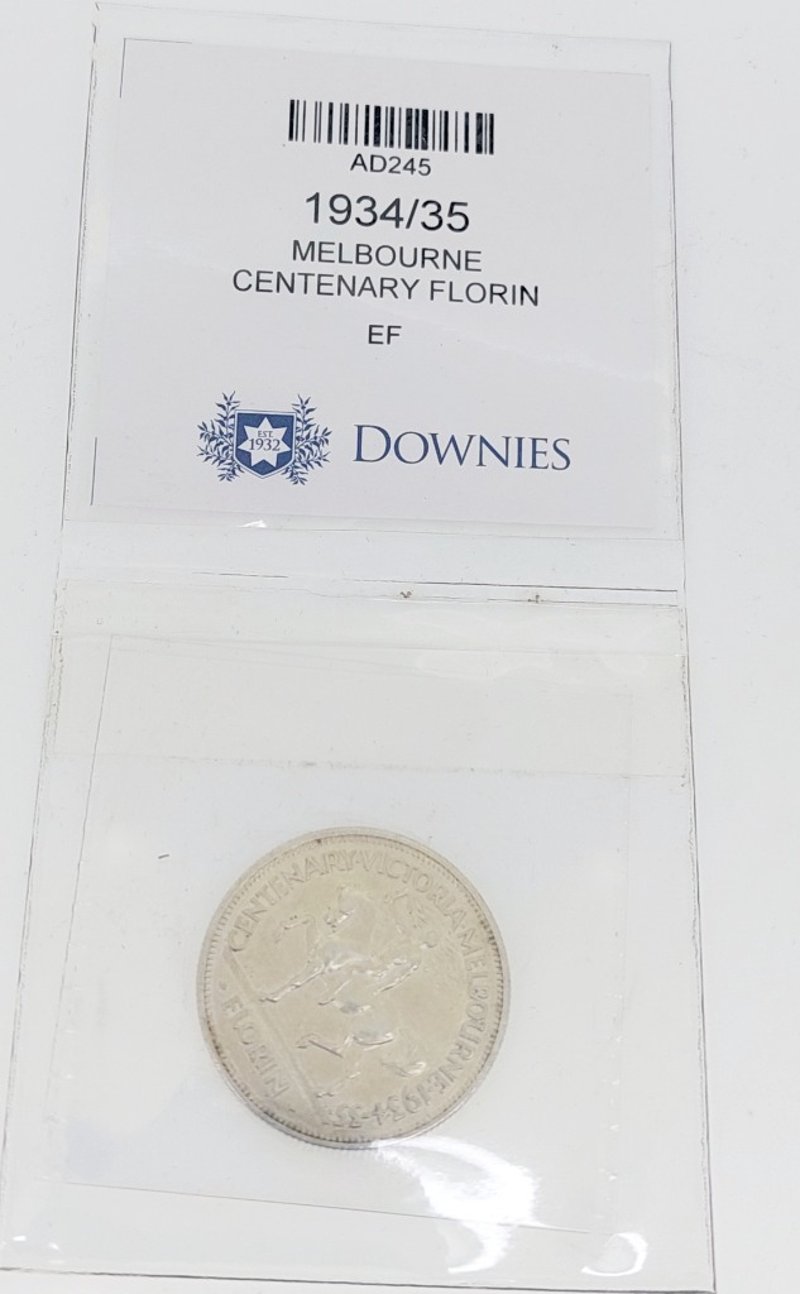 1934/35 MELBOURNE CENTENARY FLORIN EF COIN488239+86