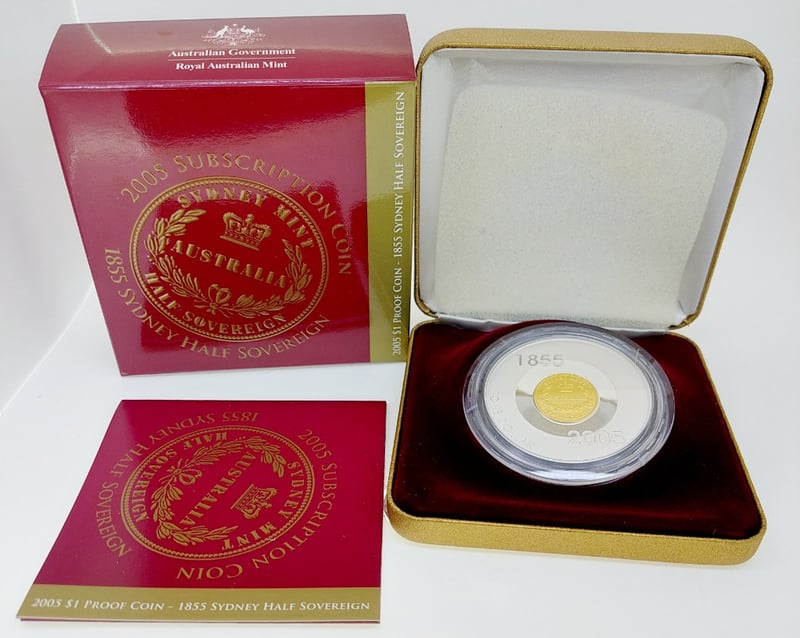 2005 SUBSCRIPTION $1 PROOF COIN - 1855 SYDNEY HALF SOVEREIGN488239+96