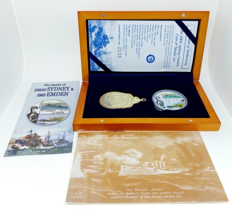 THE 2004 BATTLE OF HAS SYDNEY & SMS EMDEN COIN & MEDAL SET488239+81