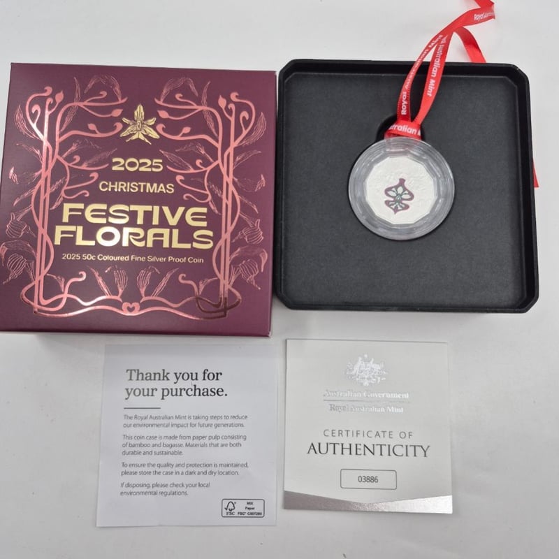 AUSTRALIAN COINRoyal Australian Mint Scarce 2025 Merry Christmas Colorised Silver Coin. Condition: Proof+44