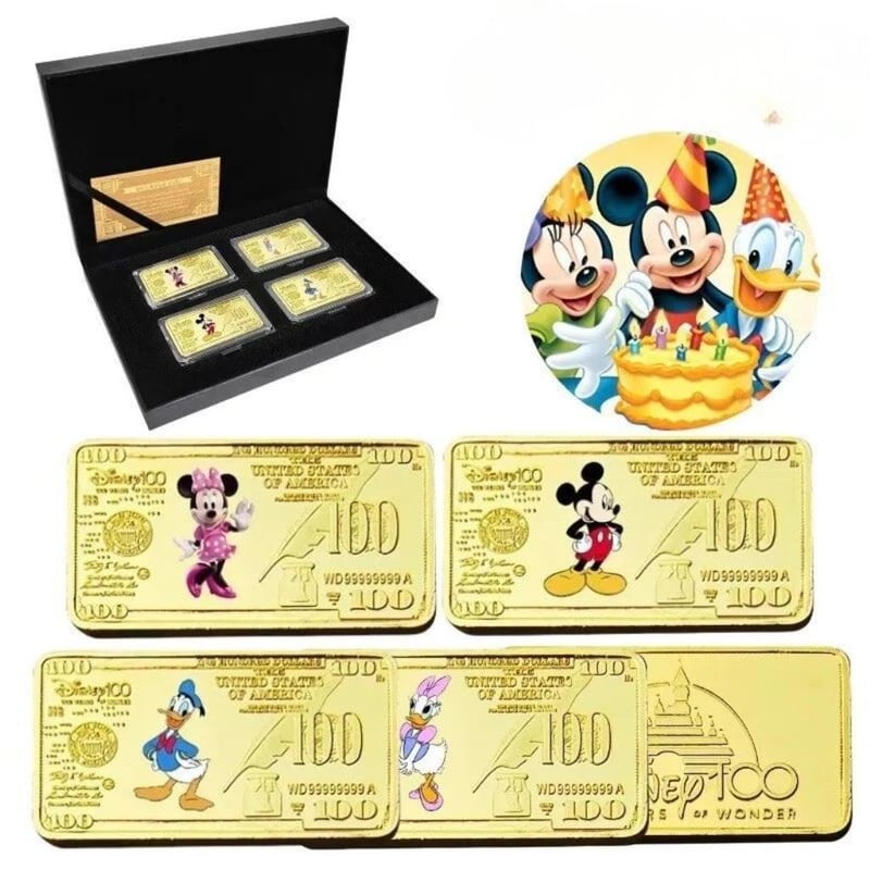 4PCS DISNEY MICKEY MINNIE MOUSE COMMEMORATIVE COIN SET COLLECTION COINS GIFTS AU-GOLD PLATED-MEDALLIONS 311115+27