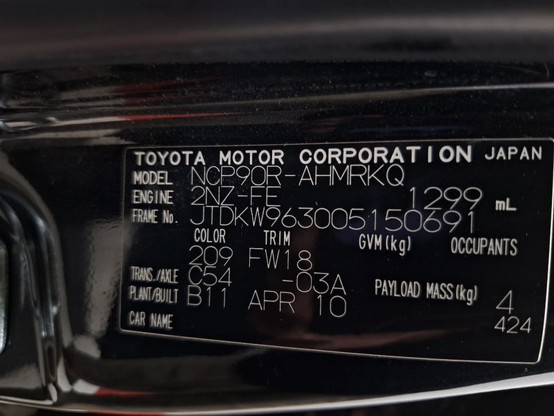 2010 Toyota Yaris NCP90R YR Year: 2010 Make: Toyota Model: Yaris Series: NCP90R Badge: YR Body: 5-Door Hatch Drive Type: Front wheel drive Odometer: Indicating 240,680 Kilometers Engine: 1.3 I4 Petrol Transmission: Manual Colour: Black Seats: 5 Description/extras: Air Conditioning, Power windows, SRS, Digital dash, Tinted windows, Climate control, AUX / USB, Central locking, CD player, Log books/Owners manual. Cup Holders Exterior Paint Deterioration, Interior Upholstery Damage. Price Guide - $1,850 - $3,500 (Based on Unmodified Vehicle) VIN: JTDKW963005150691 ENG No: 2NZ5729353 AS PER PPSR (Key #A24 Carrara x2 keys) Lloyds stock #1033324+1 #PCV