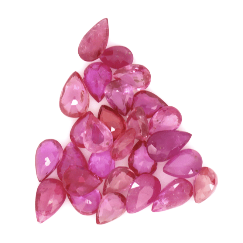 5.09CT TSW X 27, NATURAL CORUNDUM RUBIES, PEAR FACETED CUT, MODERATE EYE VISIBLE INCLUSIONS, ENHANCED, LOOSE, UNSET.