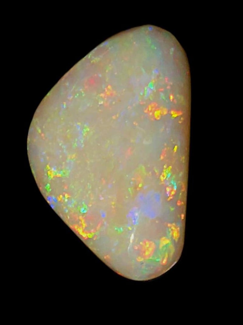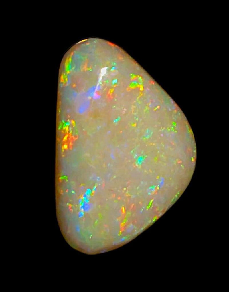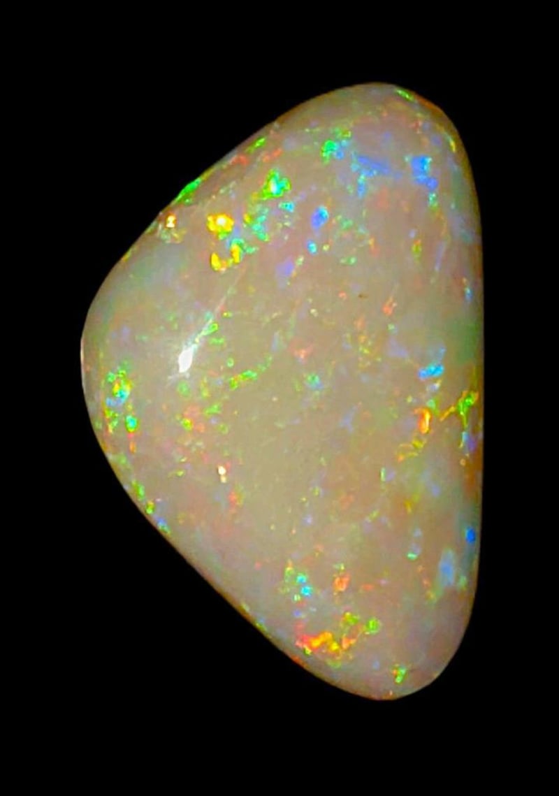 9.7 CARATS COOBER PEDY DARK BASED OPAL. SMOOTH FREE FORM CUT WITH EVEN FACE COLOUR AND PRETTY TONES OF GOLDS ORANGES PINKS GREENS BLUES CYANS AND PURPLES. 21X14X5 Valuations Provided by an Independent Third-Party Professional Not Directly Associated With Lloyds Auctions at AUD $3450This valuation has been conducted by an independent third-party professional. The valuation amount is an assessment by the issuing valuer and does not reflect the auction value of the item. Any inquiries regarding the valuation should be directed to the issuing valuer (refer to contact details on the certificate), as Lloyds Auctions has no affiliation or influence over the valuation, the valuer, or the stated amount. Condition: Good - Refer Images 0586190+2