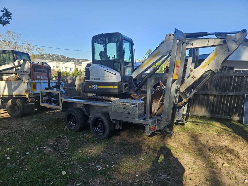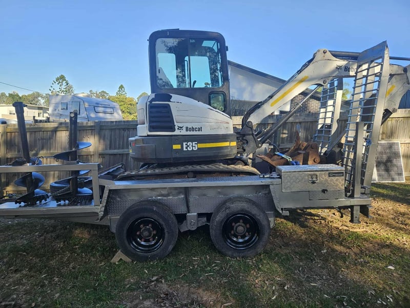 Bobcat E35 Excavator with 8T Plant Trailer and multiple attachments