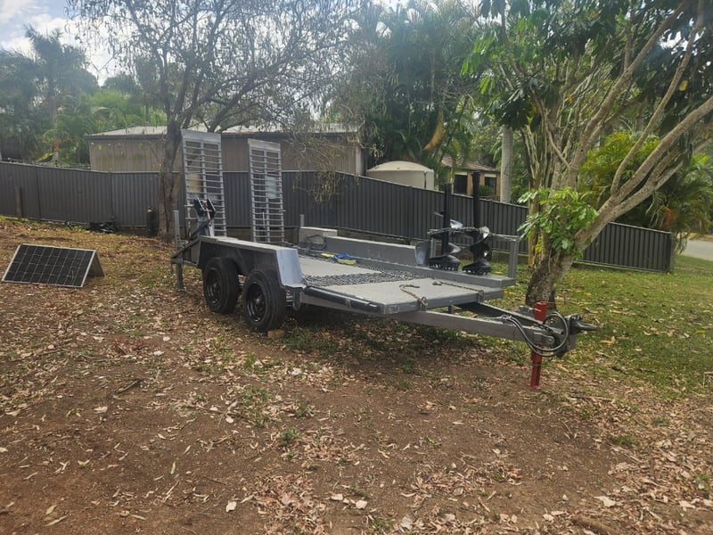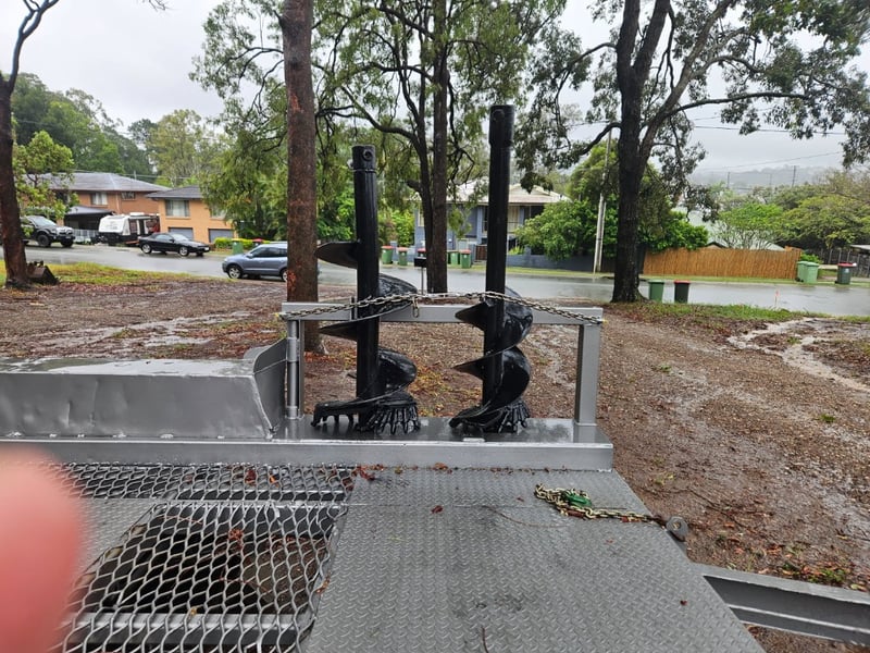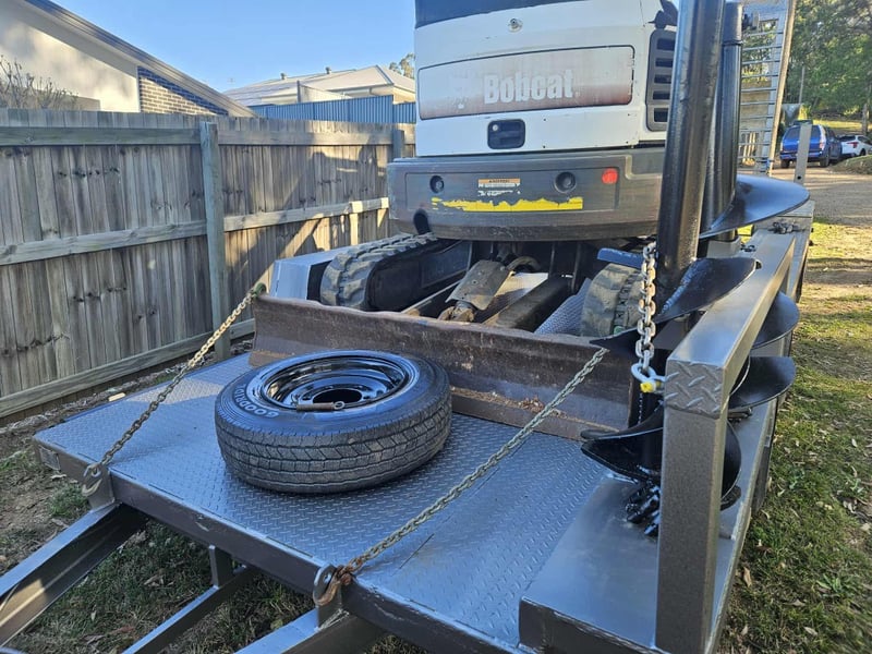Description: Comes with 8T machinery trailer, enclosed cab 3.5T excavator with AC, comes with full set of buckets including Rock Breaker, Auger Drive and 2 Augers (350mm & 450mm), Auger Extension, 1 x Auger Extension, 3 x Buckets (300mm, 450mm & 1100mm) and 1 x Ripper.