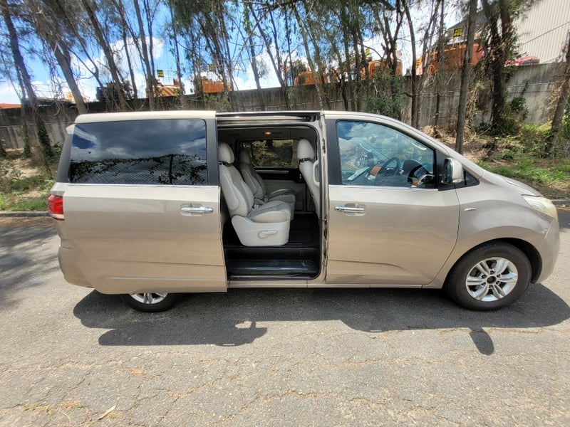 Bluetooth media, multifunction steering wheel, push to start, electric side mirrors, floor mats, dual side sliding doors. Marks dents and scratches, rear bumper damage, interior minor marks and wear, passengers side spot light damage.