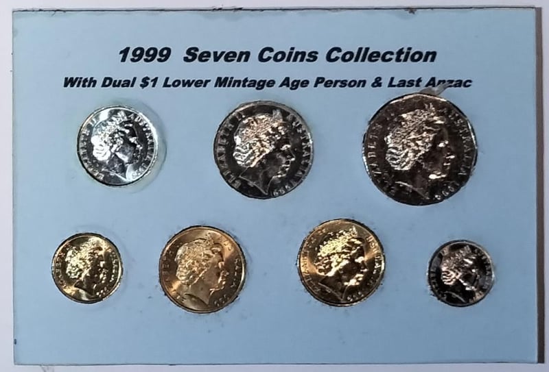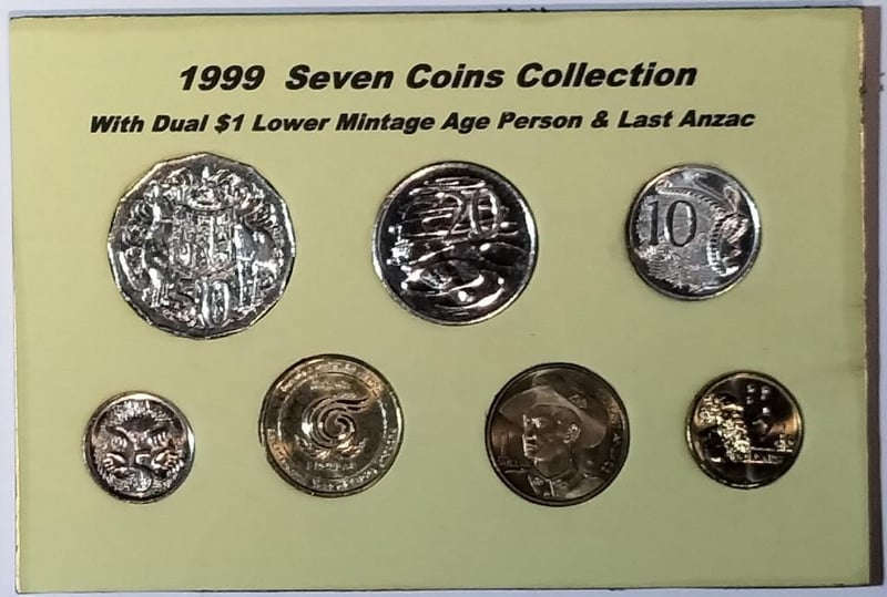 1999 SEVEN COINS COLLECTION WITH DUAL $1 LOWER MINTAGE AGE PERSON & LAST ANZAC 488302+8