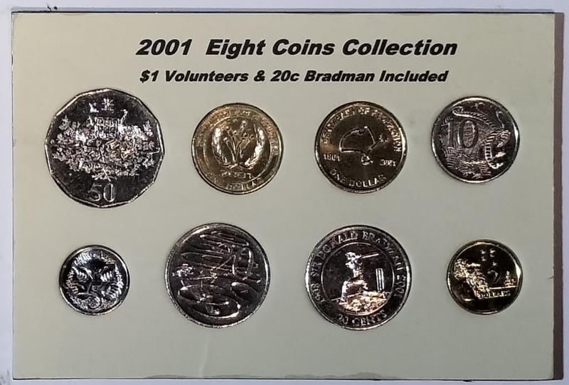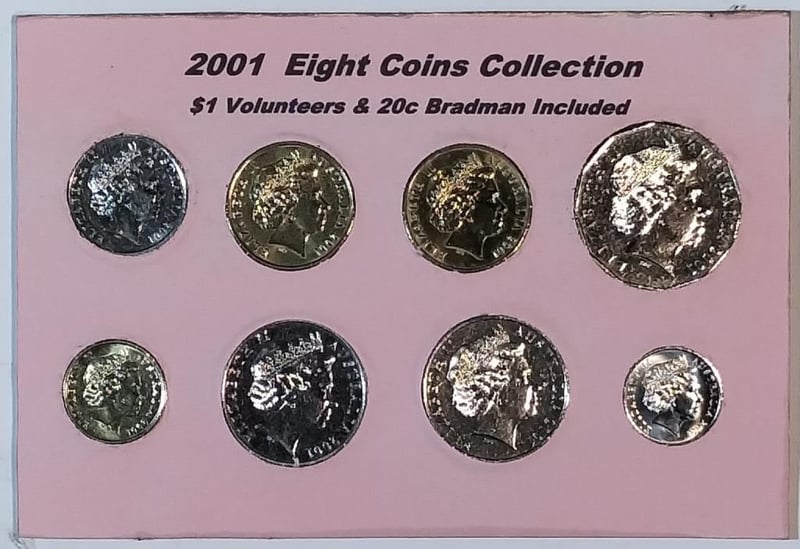2001 EIGHT COINS COLLECTION $1 VOLUNTEERS & 20C BRADMAN INCLUDED 488302+9