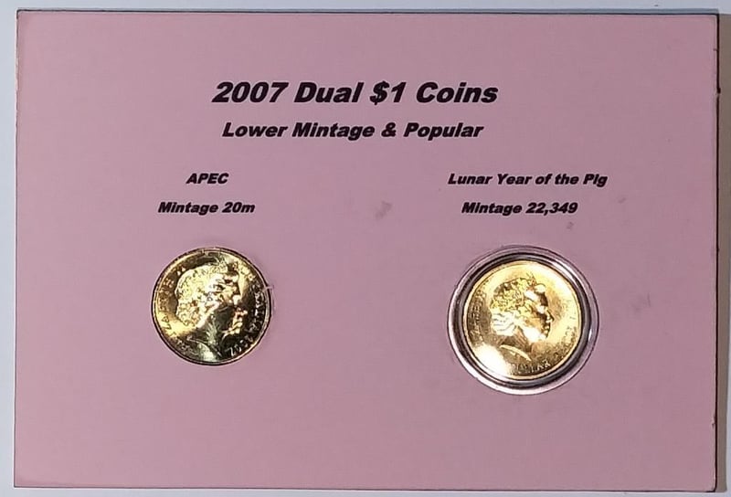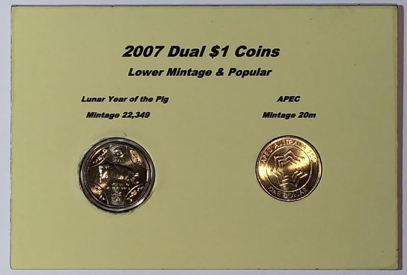 2007 DUAL $1 COINS LOWER MINTAGE & POPULAR $1 LUNAR YEAR OF THE PIG & APEC