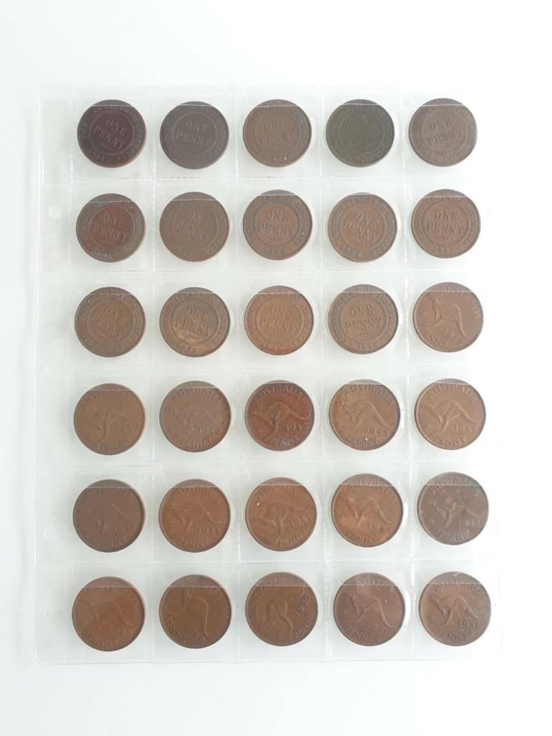 BULK AUSTRALIAN PRE DECIMAL PENNY SET 30 COINS FROM 1911- 52 ALL DIFFERENT YEAR