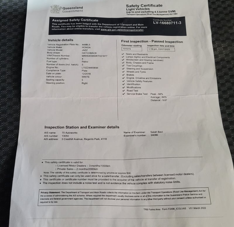 This vehicle is on the Written Off Vehicle Register and as such, some states and territories have varying rules and regulations regarding registering an inspected written off vehicle. Please check with your local Transport and Main Roads authority to check that this vehicle can be registered in your state or territory.