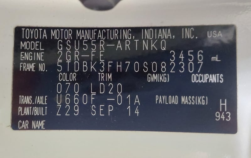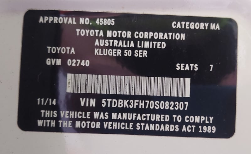 2014 Toyota Kluger GSU55R GX Year: 2014 Make: Toyota Model: Kluger Series: GSU55R Badge: GX Body: 4-Door SUV Drive Type: All wheel drive Odometer: Indicating 206,869 Kilometres Engine: 3.5 Petrol Transmission: Automatic Colour: White Seats: 7 Description/extras: Air Conditioning, Power windows, SRS, Power seats, Leather interior, Alloy wheels, Towbar, Reverse camera, Central locking, CD player. WITH BOOKS damage on drivers seat controls, Refer to photos. VIN: 5TDBK3FH70S082307 ENG No: 2GRM026633 (as per PPSR) #PCV (Key #29A Marple) Lloyds stock #581999+1