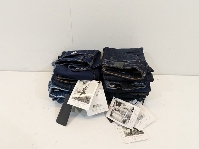 Box of 10 Brand New Mens and Women's Guess Skinny Jeans Sizes Include: 12,32,24