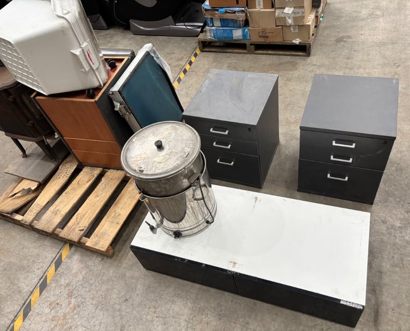 Assorted DIY/devices, assorted brands and models, includes Lockable Draw cabinets,Tv unit, portable fireplace, kitchenware and more Sold as pallet lot The proceeds from this item sale go to the Little Red Heart Charity to help fund mental health support for children in need. Get ready to bid with heart and make a difference!