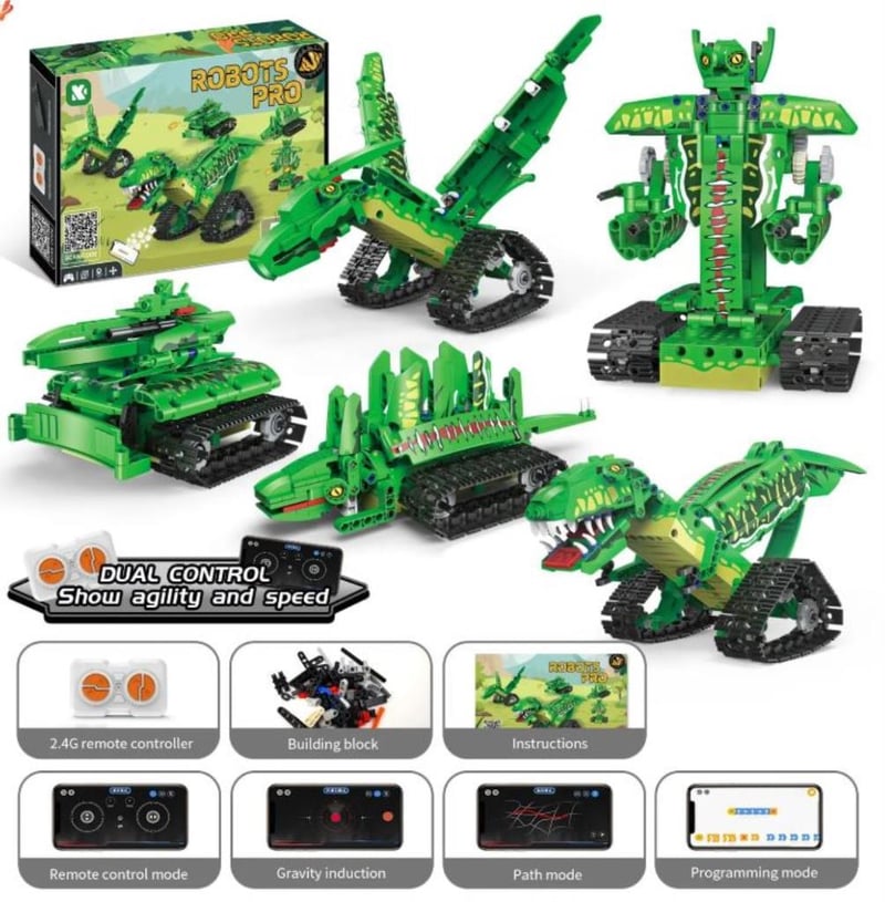 RC Dinosaur Robot Building Blocks Kits 5 Models in 1 Dual Control APP or Remote-Control Easy Download Easy Build for Kids Programable Movements Long Play Battery ( batteries not included) (BRAND NEW IN BOX) GREEN
