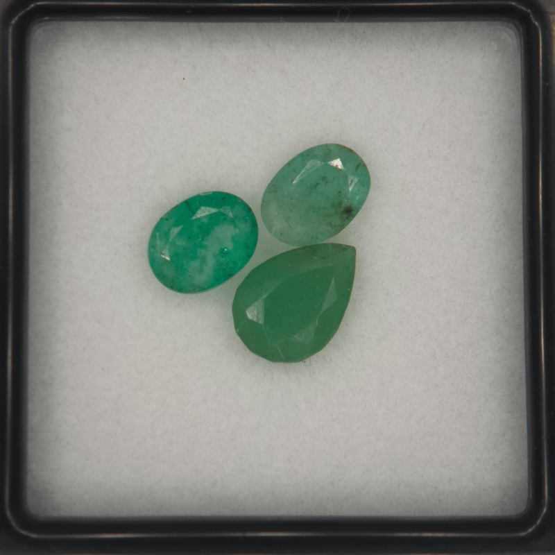 NATURAL EMERALD PARCEL – 1.465CT (3 STONES), OVAL & PEAR CUTS A Parcel Of Three Natural Emeralds With A Combined Weight Of 1.465Ct. Stones Display A Medium Green Colour, Cut In Mixed Oval And Pear Shapes (~5 × 4 Mm Avg.). Translucent Clarity With Visible Inclusions, With One Stone Showing Vivid Strong Colour. Treated With Common Oiling. Report #352804, Issued By Certauth On 18/8/2025, Lists An Estimated Valuation Of Usd $400.00 Valuations Provided by an Independent Third-Party Professional Not Directly Associated With Lloyds Auctions at AUD $400USDThis valuation has been conducted by an independent third-party professional. The valuation amount is an assessment by the issuing valuer and does not reflect the auction value of the item. Any inquiries regarding the valuation should be directed to the issuing valuer (refer to contact details on the certificate), as Lloyds Auctions has no affiliation or influence over the valuation, the valuer, or the stated amount. Condition: Good - Refer Images 0488289+352804