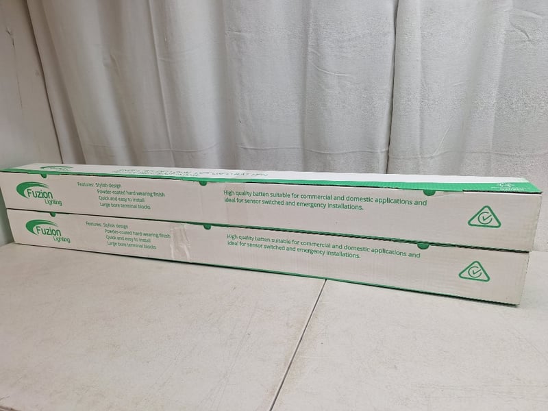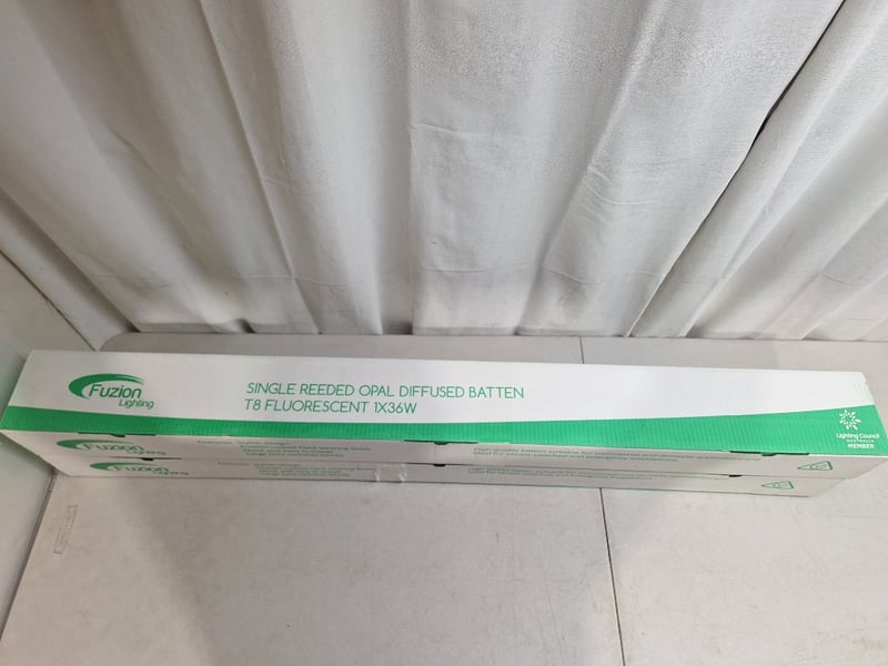 2 x Single Reeded Opal Diffused Batten lights, Fuzion Lighting, stylish design, large bore terminal blocks, powder coated hard wearing finish.