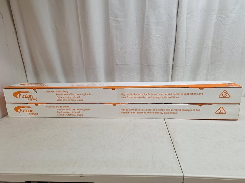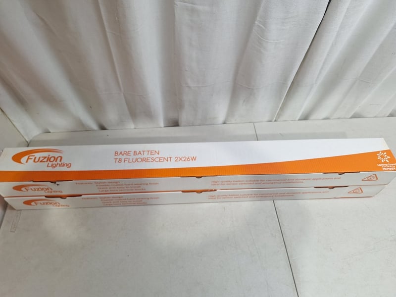 2 x Bare Batten T8 Fluorescent 2x26w, Fuzion Lighting, stylish design, large bore terminal blocks, powder coated hard wearing finish.