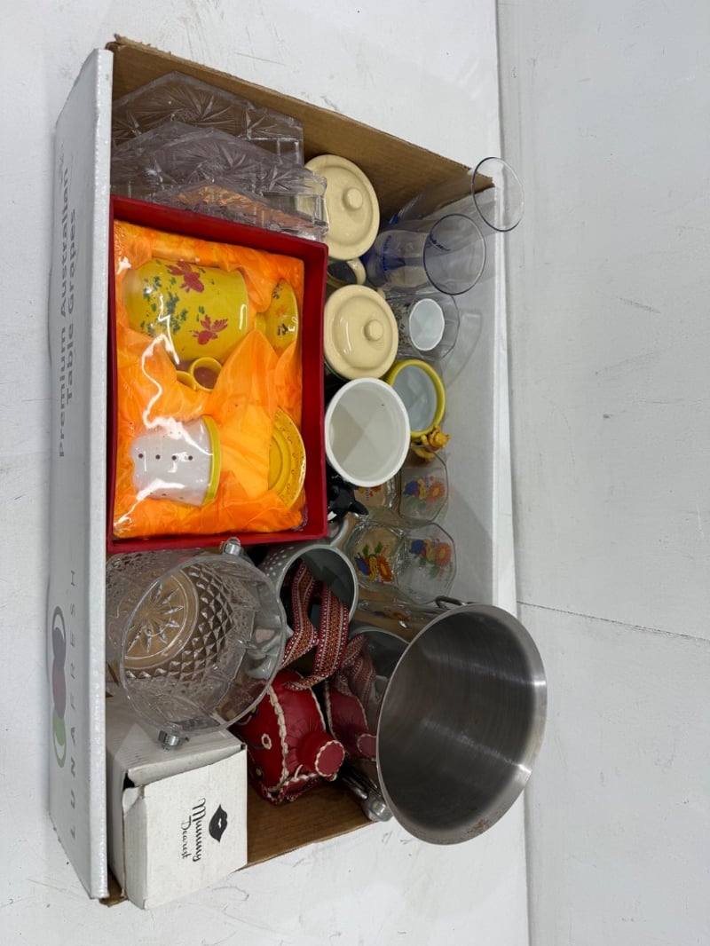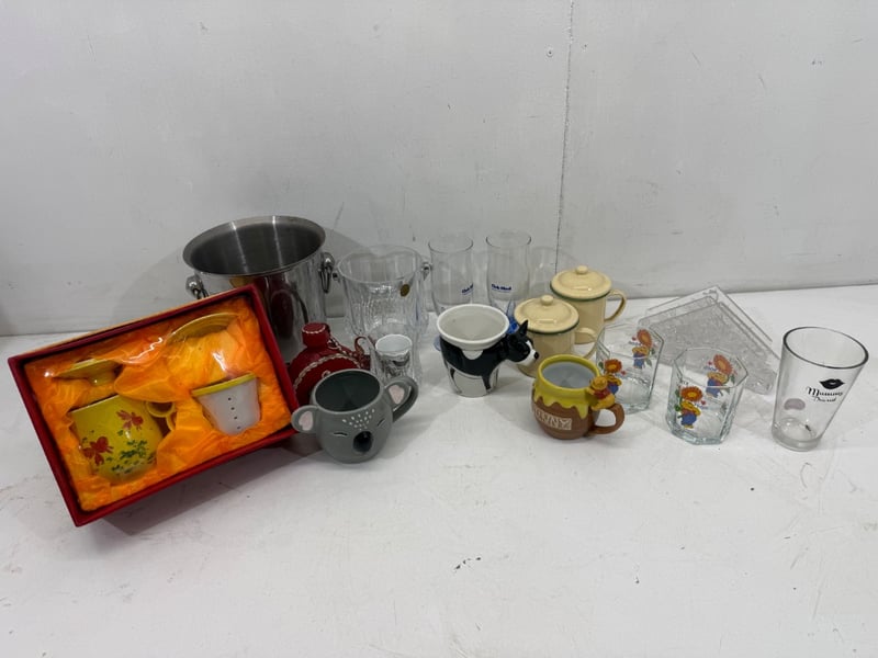 Glasses and mugs, assorted glasses, mugs, ice holders etc. Quantity-1 sold as lot