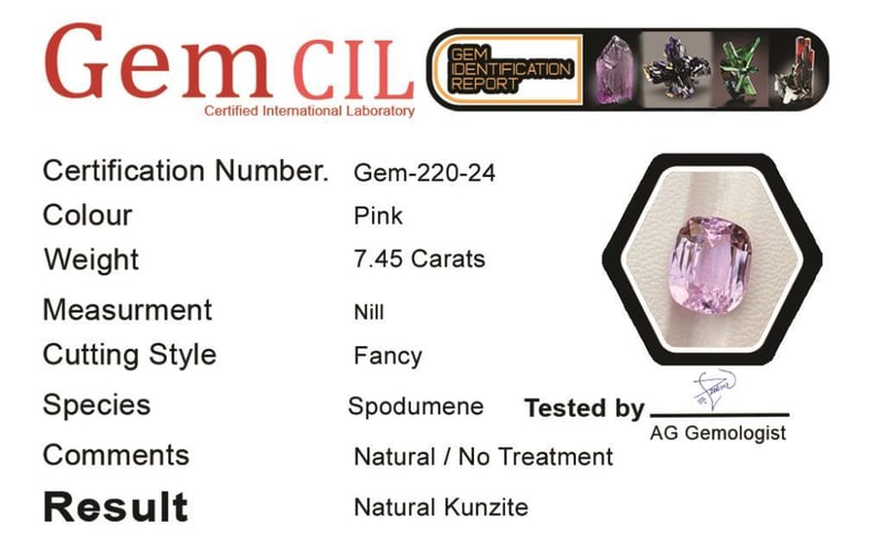 7.45 CARATS NATURAL QUALITY PINK KUNZITE 7.45 Carats Natural Quality Pink Kunzite Stone = Natural Kunzite Weight = 7.45 Carats Colour = Pink Cut = Fancy Lustre = Excellent Note = Gem Cil, Certified, Precise Custom Cut (Not Commercial) Condition: Good 0 +74