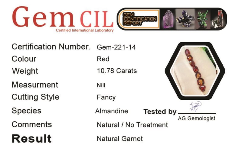 10.78 CARATS NATURAL SPLENDID ALMANDINE GARNET LOT 10.78 Carats Natural Splendid Almandine Garnet Lot Stone = Natural Garnet Weight = 10.78 Carats Colour = Pigeon Blood Cut = Fancy Note = Natural, No Treatment Lustre = Excellent Note = Gem Cil, Certified, Precise Custom Cut (Not Commercial) Condition: Good 0 +114