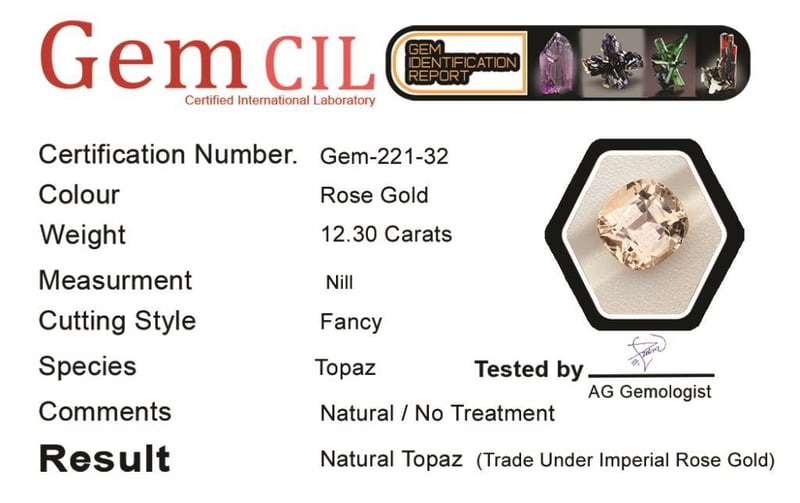 12.30 CARATS NATURAL IMPERIAL ROSE GOLD TOPAZ 12.30 Carats Natural Imperial Rose Gold Topaz Stone = Natural Topaz Weight = 12.30 Carats Colour = Rose Gold Cut = Fancy Lustre = Excellent Treatment = Natural, No Treatment Quality = Vvs2 (Premium) Note = Precise Custom Cut (Not Commercial) This Natural Topaz Has High Level Of Pleochroism, So Color Intensity Can Vary Upon Different Light Conditions. . Condition: Good 0 +132
