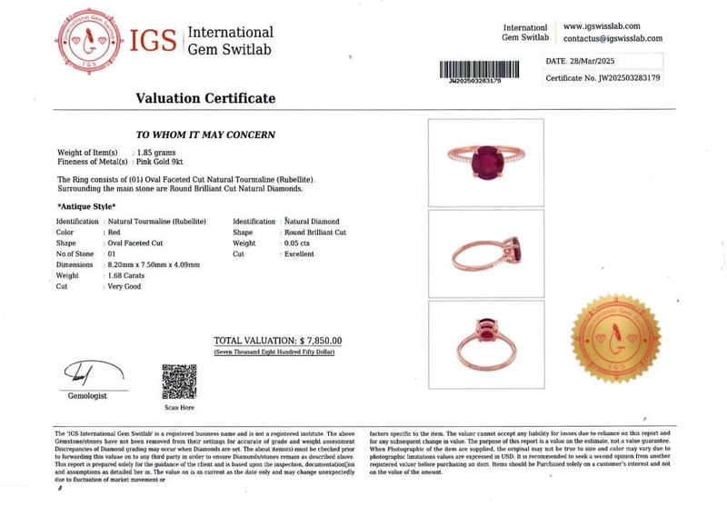 This valuation has been conducted by an independent third-party professional. The valuation amount is an assessment by the issuing valuer and does not reflect the auction value of the item.
