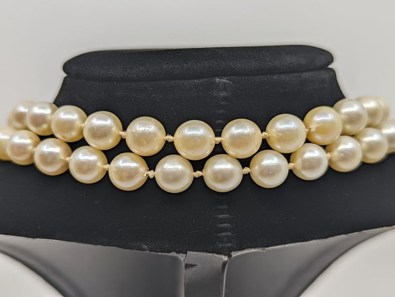 CONTINUOUS STRAND OF 114 AKOYA CULTURED PEARLS Continuous Strand Of 114 Akoya Cultured Pearls 9.75Mm - 7.50Mm Off Round, Dull Lustre Creamy Hue Length - 117.00Cm Total Item Weight: 104.26g Condition: Good - Refer To Images This valuation has been conducted by an independent third-party professional. The valuation amount is an assessment by the issuing valuer and does not reflect the auction value of the item. Any inquiries regarding the valuation should be directed to the issuing valuer (refer to contact details on the certificate), as Lloyds Auctions has no affiliation or influence over the valuation, the valuer, or the stated amount. Insurance Replacement Valuation Amount: $1,700.00 VAULT 586147+2