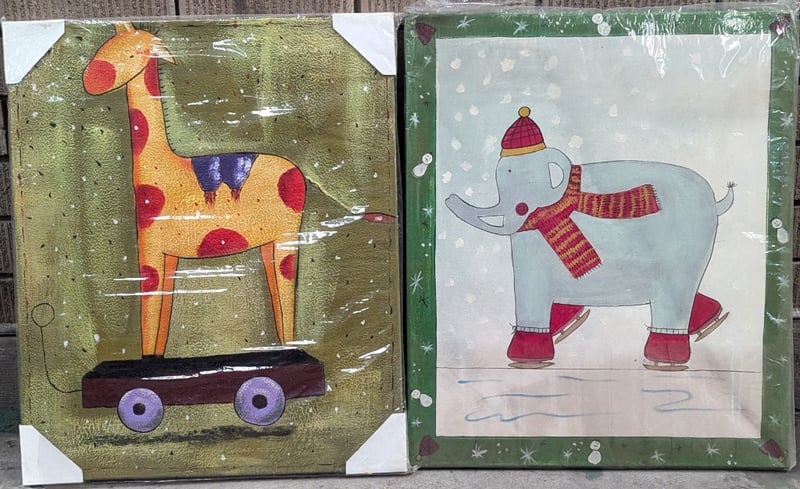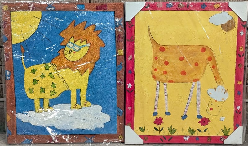 NINE OIL ON CANVAS ARTWORKS Item Size: Height: 60cm, Width: 50cm Artworks Feature Animal And Music Theme Artworks Stretched And Ready To Hang Condition: Good - Refer To Images 584844+28