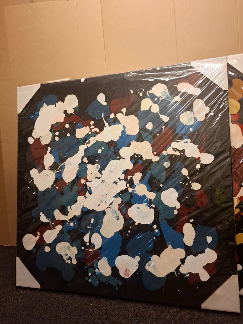 Seven WALL ARTWORKS Artworks On canvas Base, Artwork Sizes Range From Approx 100 X 100