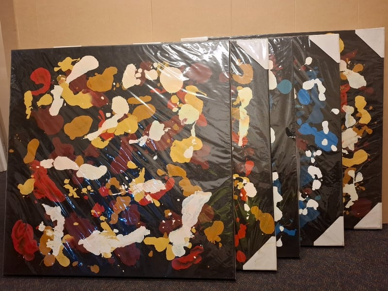 Five WALL ARTWORKS Artworks On canvas base Artwork Sizes Range From Approx 100 X 100