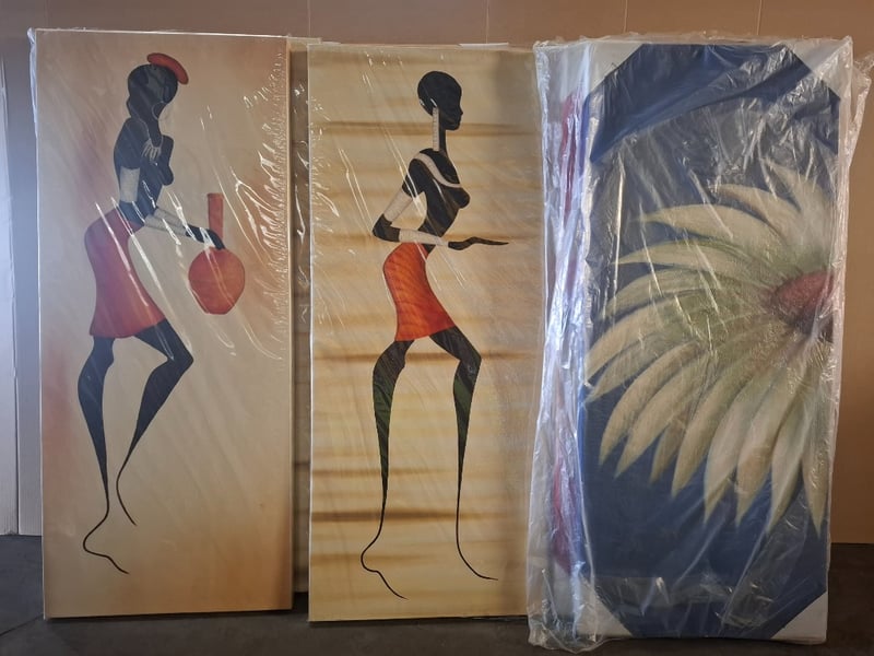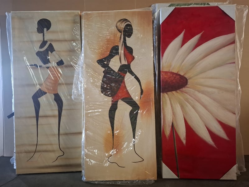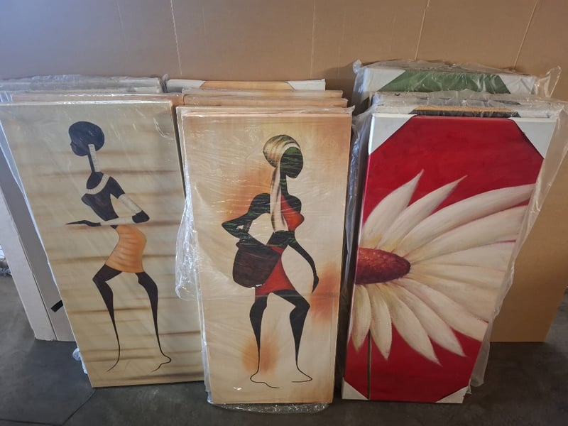 Assortment lot of Artwork Sold as lot Artworks On Canvas, Artwork Sizes Range From Approx 50 X 100