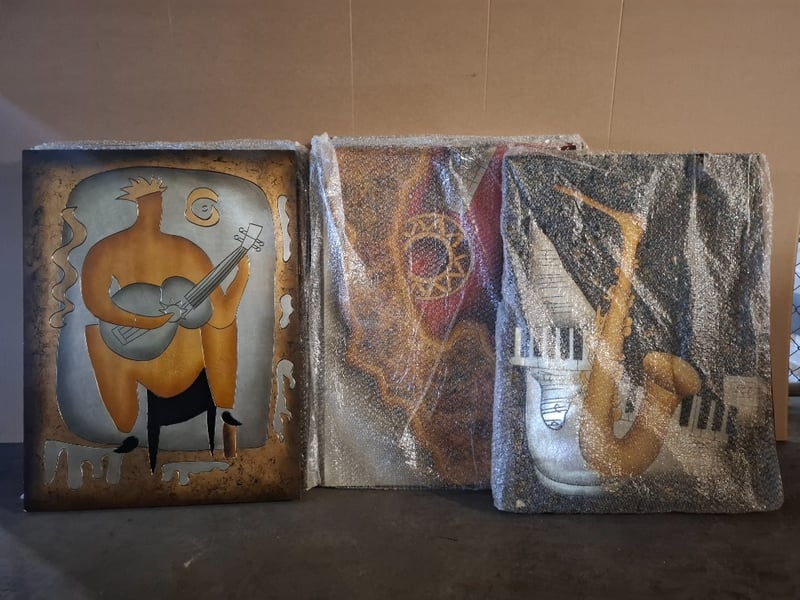 Assortment lot of Artwork Sold as lot Artworks On Timber, Artwork Sizes Range From Approx