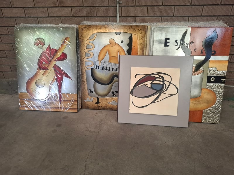 Assortment lot of Artwork Sold as lot Artworks On timeber , Artwork Sizes Range From Approx 60 X 80 - 60 x 60