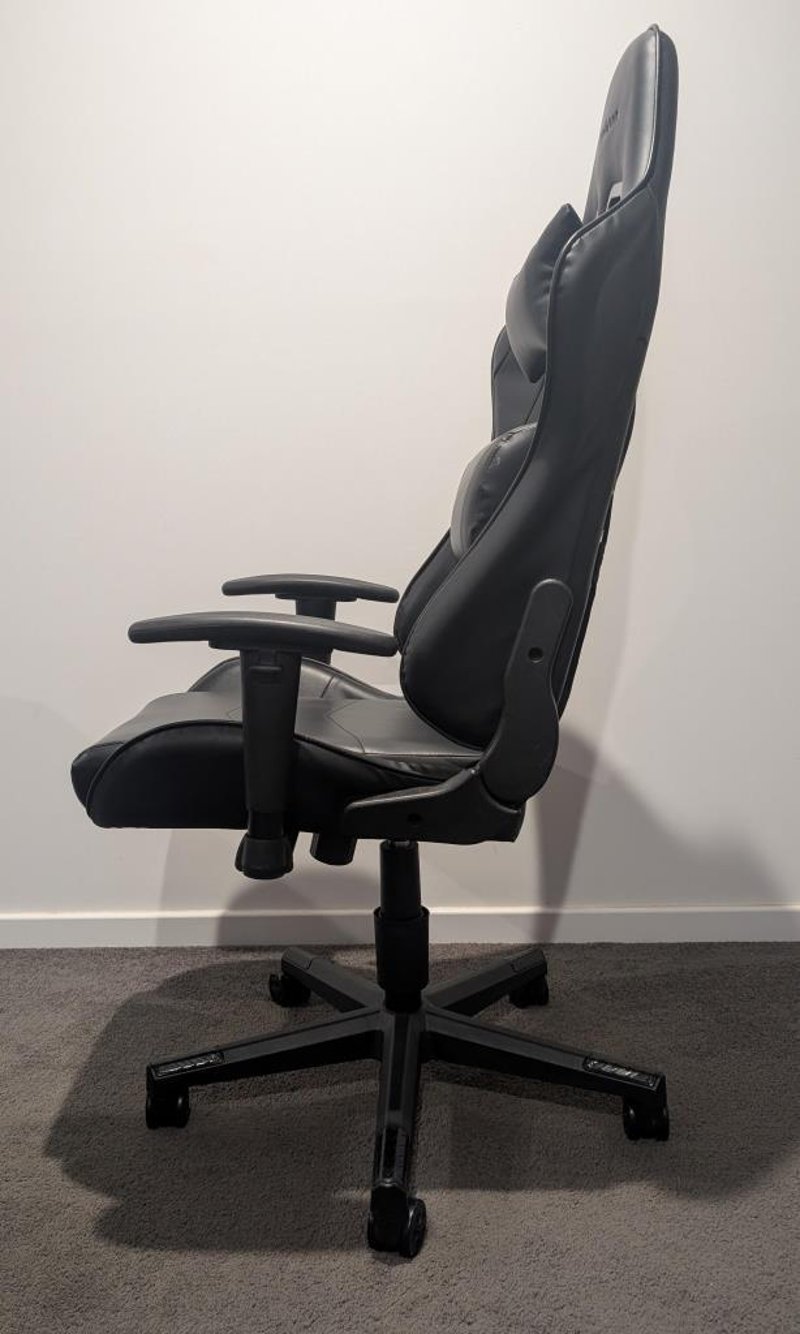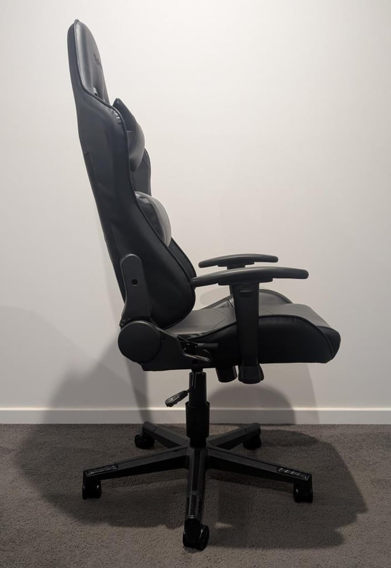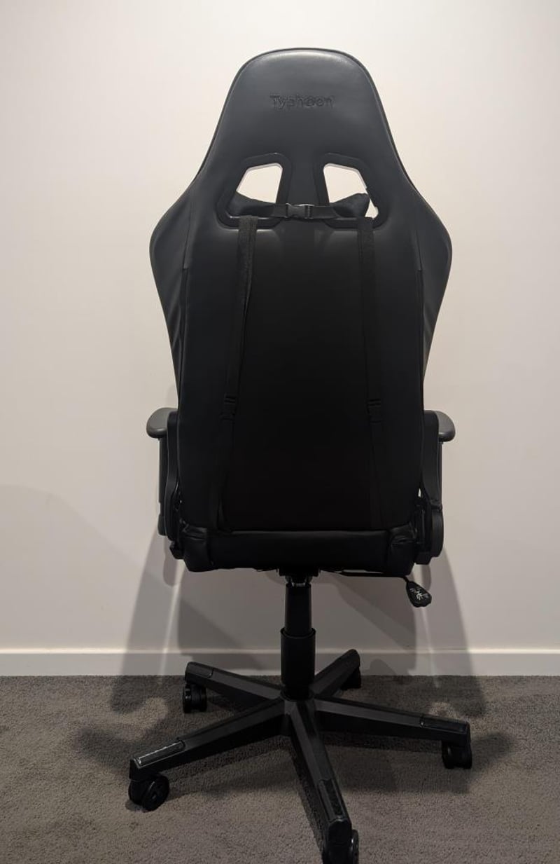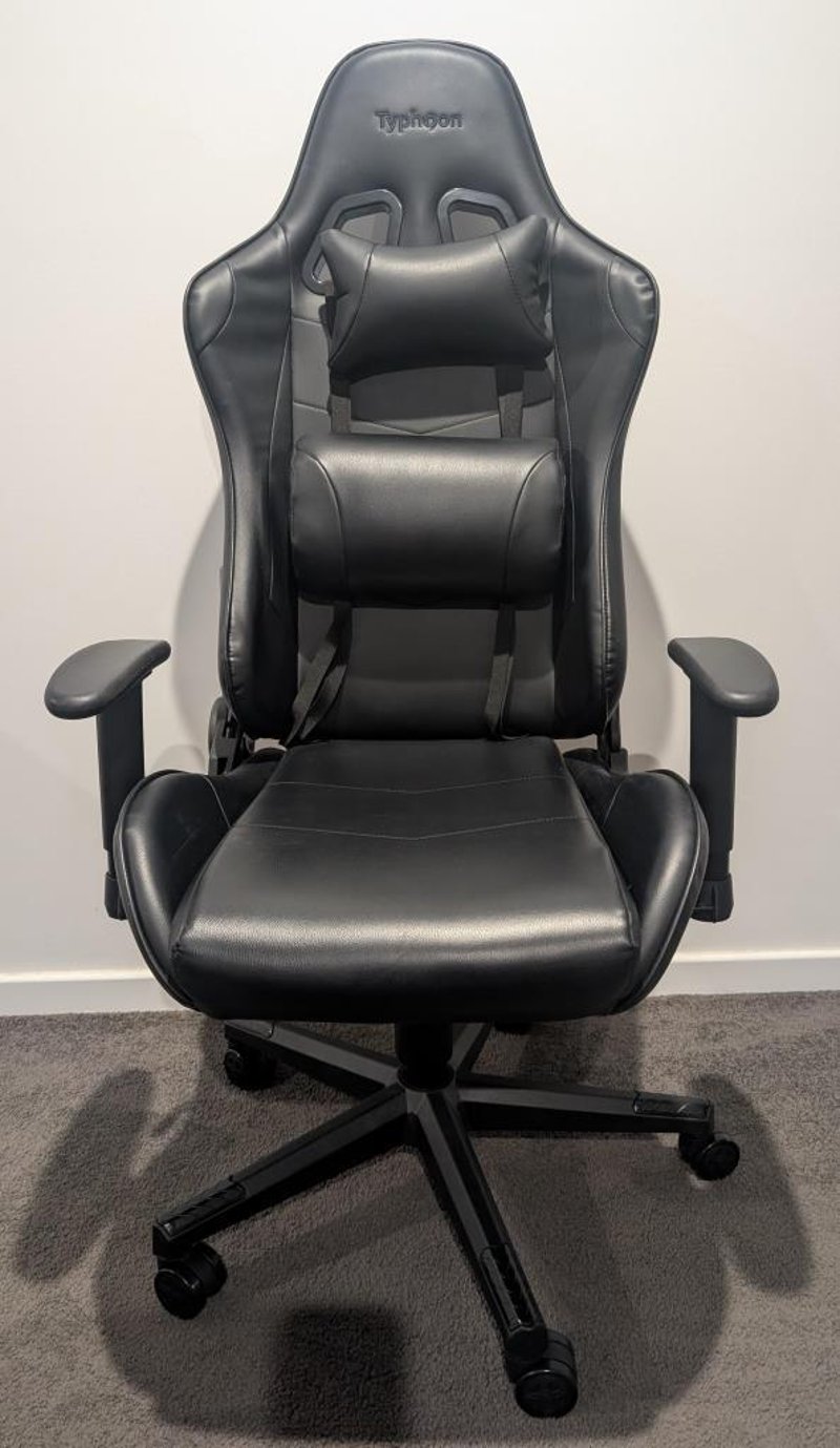 Gaming Chair, black, leather style. Brand: Typhoon Condition: Used, some wear and tear