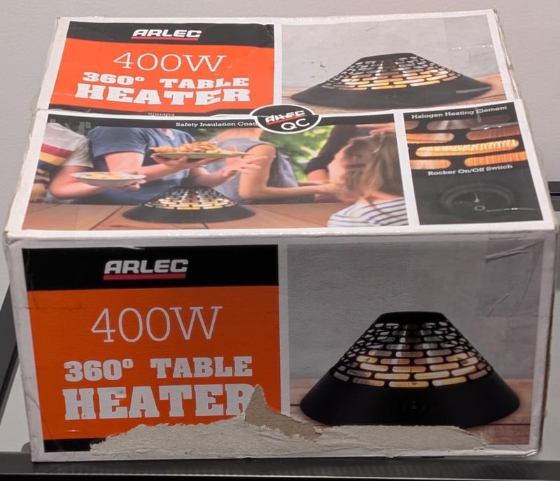 Arlec 400W Black 360° Bistro Table Heater, Plug In Condition: As New
