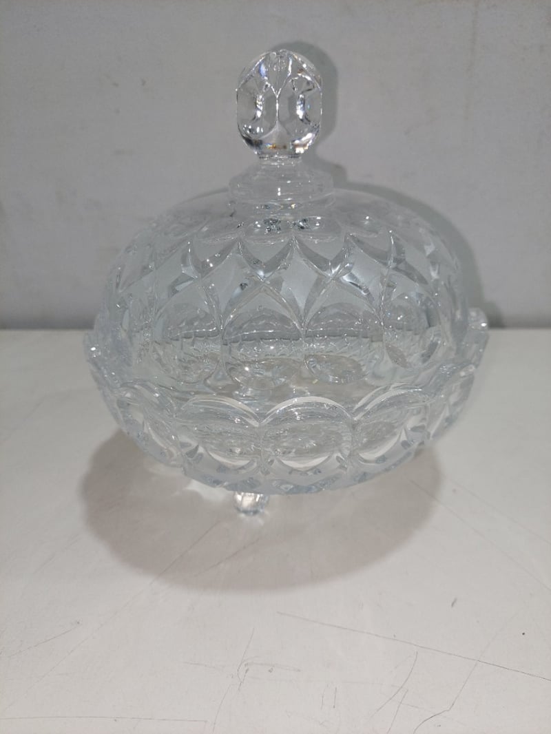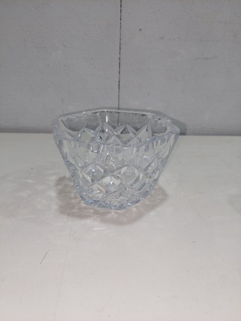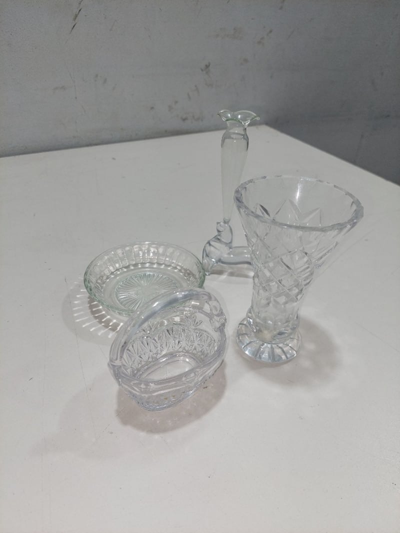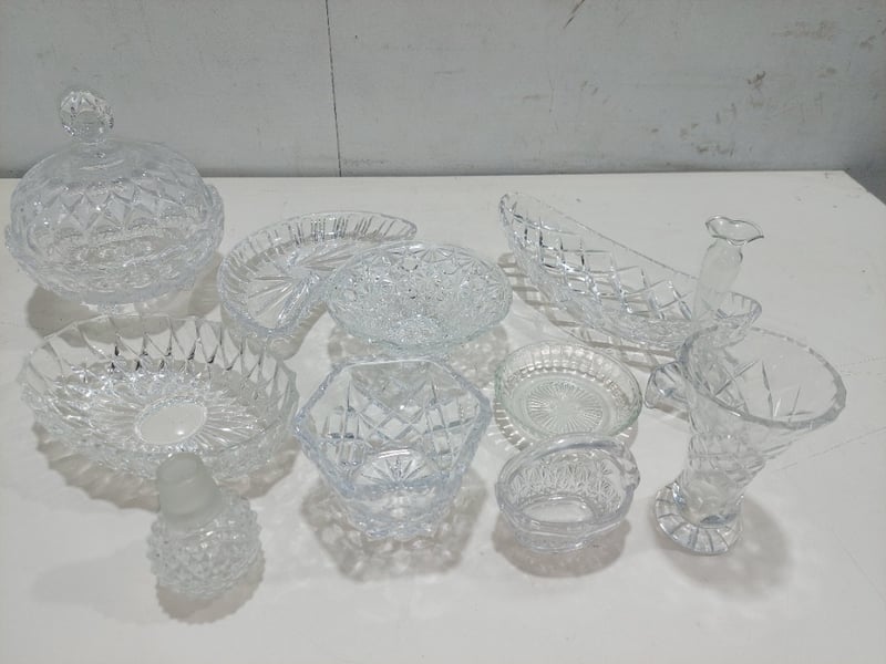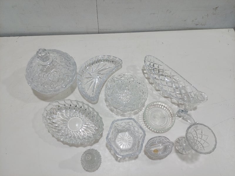 A collection of assorted crystal glassware, including bowls, dishes, and a vase. Sold as a lot.